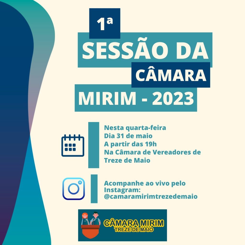Contamos com você para fazer parte dessa importante e emocionante primeira sessão da Câmara Mirim em Treze de Maio. Não perca essa oportunidade de se envolver e inspirar nossos jovens líderes. Lembrando também que a sessão será transmitida ao vivo pelo Instagram @camaramirimtrezedemaio.