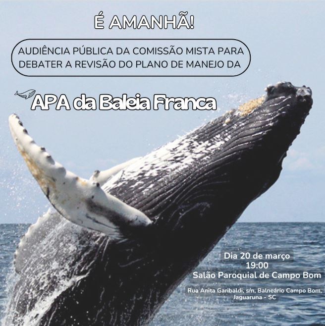 É HOJE 20/03! Venha participar da Audiência Pública sobre a APA da Baleia Franca!
