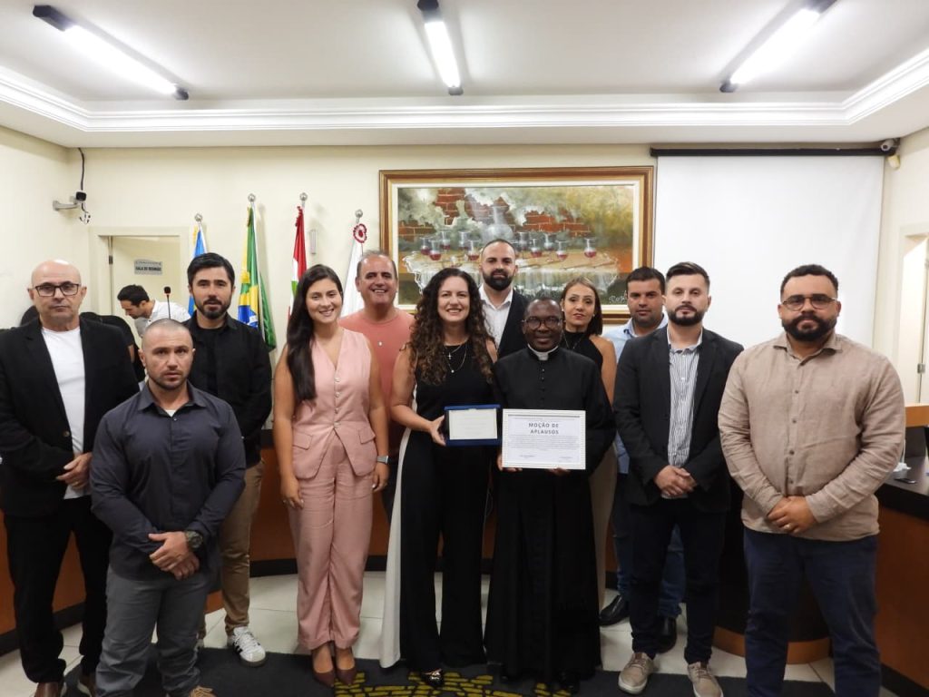 Foi entregue no plenário a Moção n.º 2/2026, de aplausos e reconhecimento ao padre Paulo Hosi, “em razão de sua relevante atuação pastoral, espiritual e social junto à comunidade”. A proposição foi da ver.ª Cariny Figueiredo.