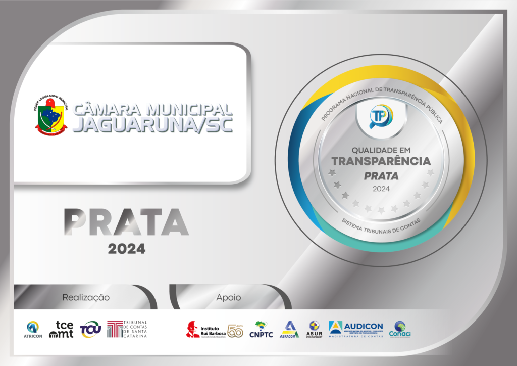 A Câmara Municipal de Jaguaruna alcançou mais um marco importante ao receber o Selo Prata de Qualidade em Transparência Pública, concedido durante o IX Encontro Nacional dos Tribunais de Contas do Brasil, realizado em 13 de novembro de 2024. A certificação, promovida pela Associação dos Membros dos Tribunais de Contas do Brasil (Atricon) em parceria com o Tribunal de Contas do Estado de Santa Catarina (TCE/SC), integra o 3º Ciclo do Programa Nacional de Transparência Pública (PNTP), que avalia a qualidade das informações disponibilizadas pelos órgão públicos.