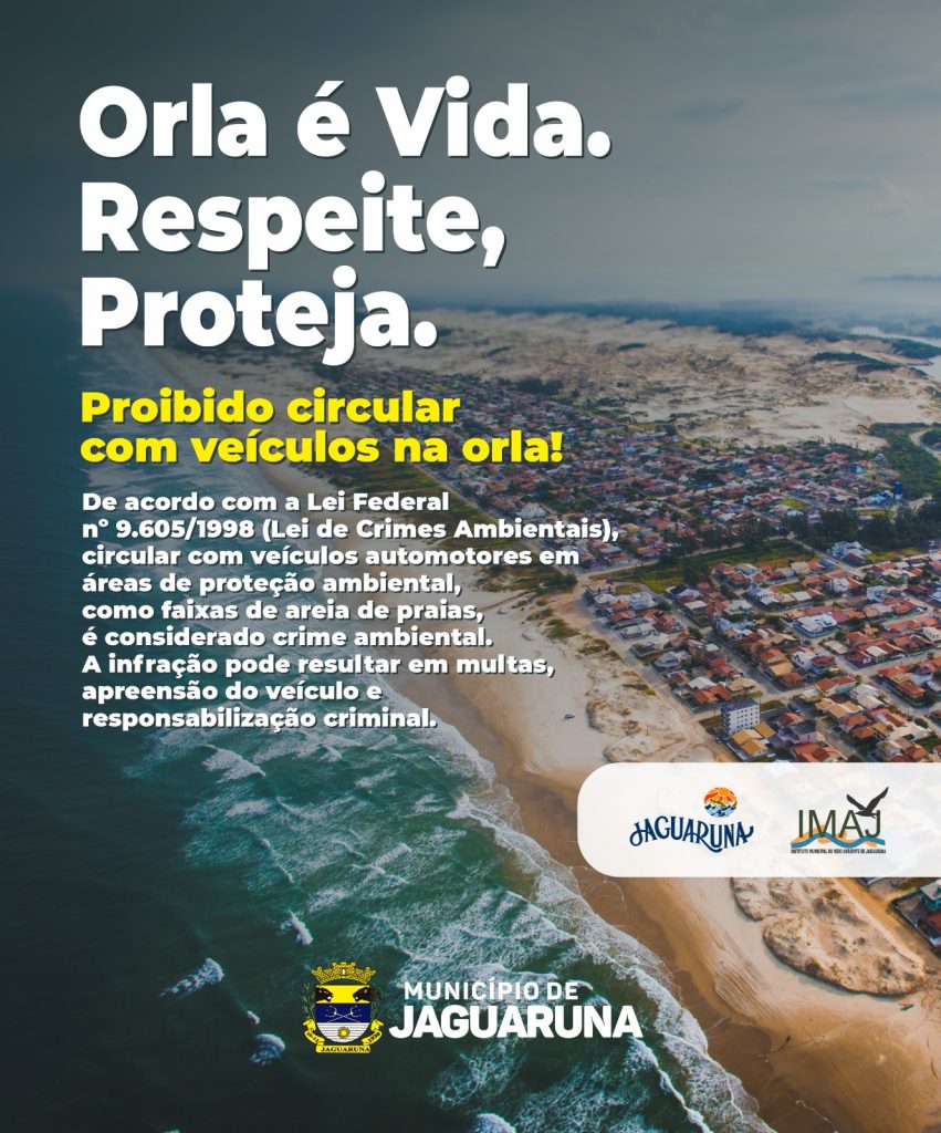 A Prefeitura de Jaguaruna está promovendo uma ampla campanha de conscientização ambiental e de segurança, com foco na proibição da circulação de veículos automotores na faixa de areia das praias.