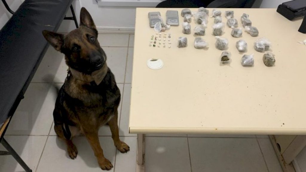 de Tubarão apreendeu 11,6 gramas de crack e 28,9 gramas de maconha em um terreno no bairro Passagem. Os policiais contaram com a ajuda de um cão farejador durante a procura pelos entorpecentes.