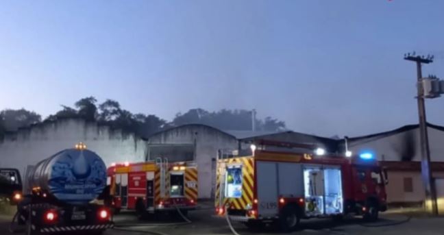 Bombeiros apagam incêndio em estoque de indústria em Sangão
