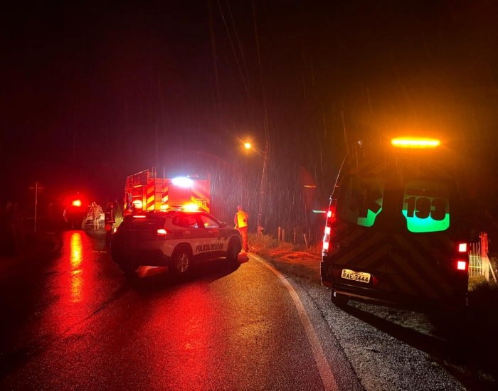 Um veículo Toyota Corolla, com placas de Jaguaruna e quatro ocupantes, caiu de uma ponte de madeira na localidade de São Roque, em Gravatal, na noite desse sábado (07), por volta das 23h20. Uma mulher de 62 anos, que conduzia o carro e um homem de 71 anos, que era