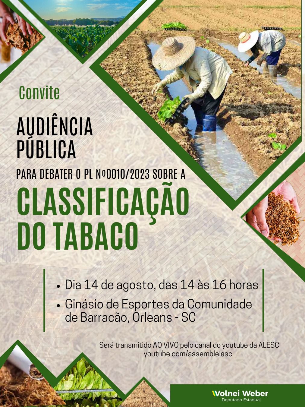 Audiência pública sobre classificação do tabaco será realizada amanhã em Orleans