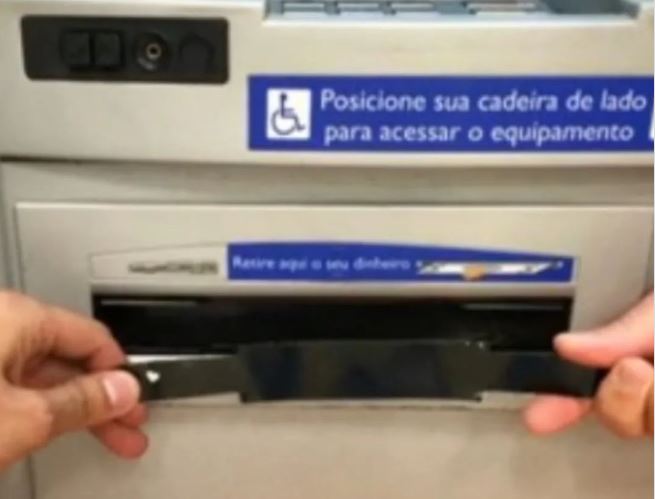 O dispositivo usado por criminosos é instalado para o roubo de dados. De acordo com a gerente da agência, em relato para a PM, um vigilante descobriu os dispositivos ao chegar para o expediente.