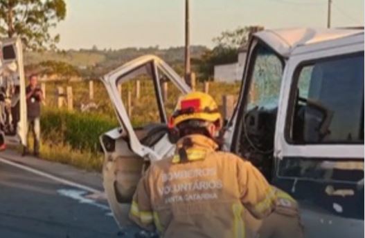 Uma colisão frontal entre um caminhão e van deixou seis pessoas feridas na tarde desta quinta-feira (27), por volta das 17h20, na Rodovia Gregório Espíndola (SC-443), no bairro Naspolini, Rodovia que liga Morro da Fumaça e Sangão.