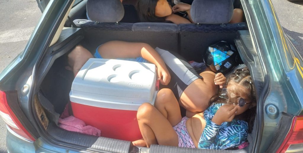 Crianças são transportadas em porta-malas de carro na BR-101 em Paulo Lopes