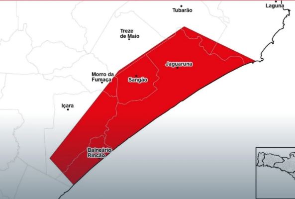 A Defesa Civil de Santa Catarina emitiu na tarde desta terça-feira (03), às 15 horas um alerta para que a população dos municípios de Balneário Rincão, Içara, Jaguaruna, Morro da Fumaça, Sangão, Treze de Maio e Tubarão fiquem em alerta nas próximas 2 horas. Ocorrências ligue 199 ou 193.