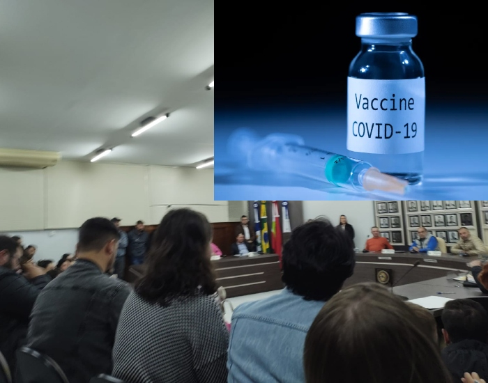 Dezenas de pais e mães de Treze de Maio se reuniram na Câmara de Vereadores nesta segunda-feira, dia 26, para debater sobre a obrigatoriedade da vacina contra a covid-19 em crianças de 6 meses a 5 anos.
