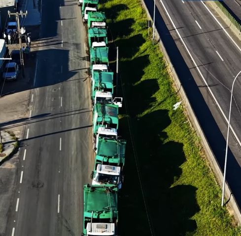 A mobilização iniciou por volta das 7h20 deste domingo e conta com o total de 33 caminhões da empresa, que seguem percorrendo as vias do município.