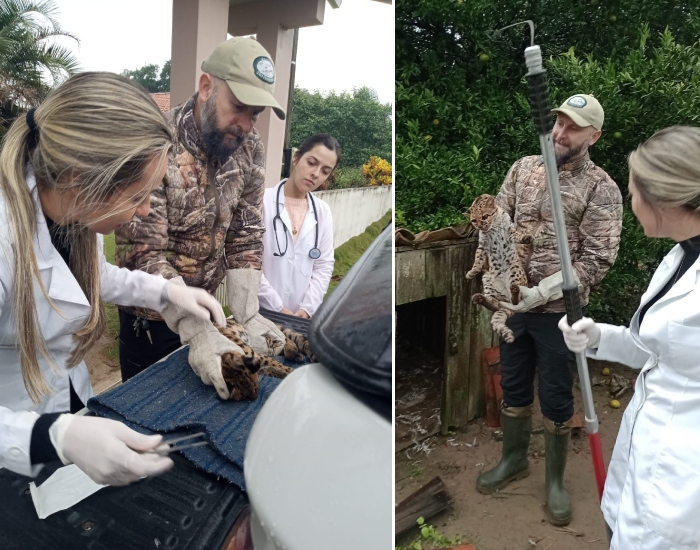 Os Bombeiros Voluntários foram acionados em uma propriedade localizada em Sanga Grande Baixa, em Jaguaruna, para auxiliar na captura de um animal não muito comum: um gato-maracajá. O felino foi encontrado dentro de um galinheiro quando a proprietária foi tratar os animais de estimação.