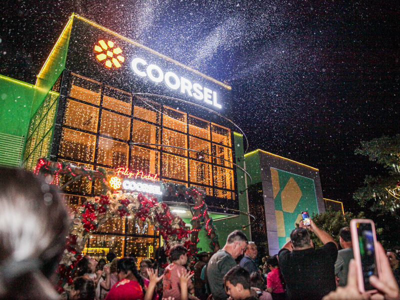 Entre os destaques, está o aguardado acendimento das Luzes de Natal da cooperativa. O momento promete ser ainda mais especial com a neve cenográfica. O evento contará com a presença especial do Papai Noel, que trará toda a alegria e magia da época para as crianças.