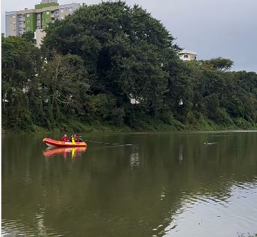 Bombeiros tentam resgate de homem que se jogou no rio Tubarão. O caso aconteceu próximo ao meio-dia deste domingo, 8, em uma passarela que liga o bairro Dehon ao Centro.