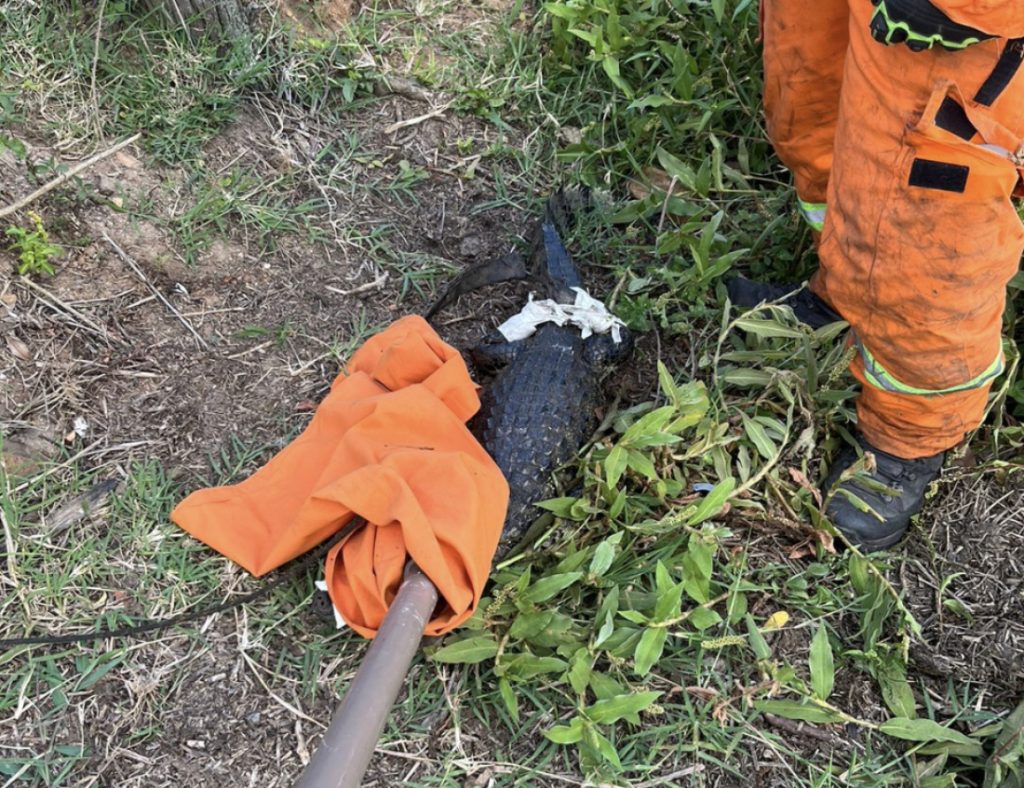 Um jacaré foi capturado nesta terça-feira (14) no bairro Garopaba do Sul, em Jaguaruna.