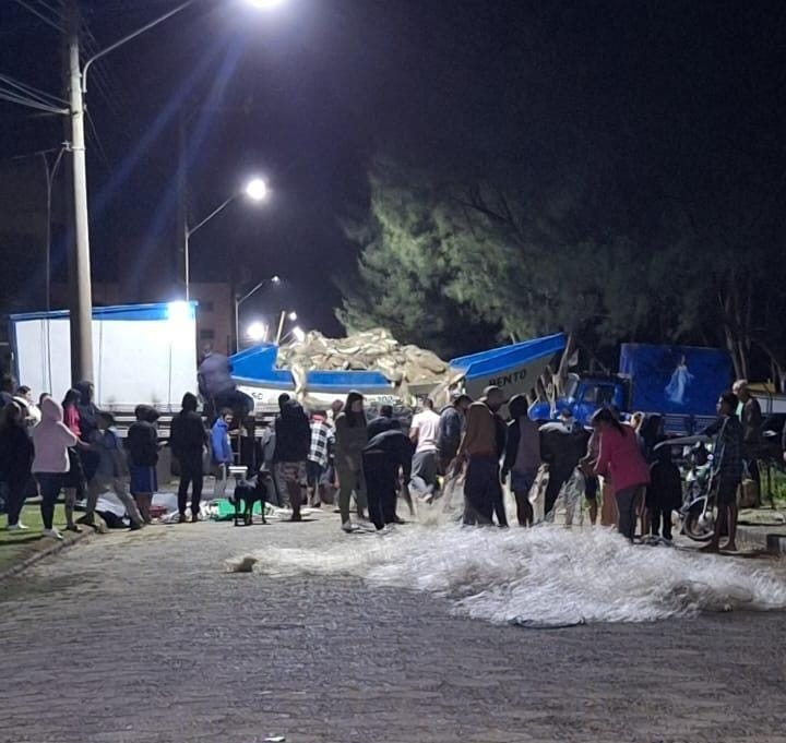 Uma grande quantidade de peixe foi capturada na madrugada desta segunda-feira (02) em Campo Bom, em Jaguaruna. De acordo com o pescador Joel Nascimento, que participou do arrastão, o total pescado chegou a aproximadamente 4,2 mil quilos.