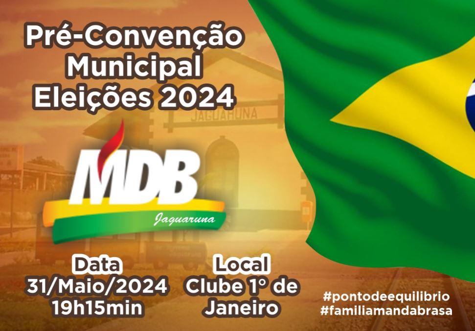 Nesta sexta-feira (31), o MDB de Jaguaruna realizará sua pré-convenção municipal, onde será reafirmado o nome de Agnaldo Serafim como pré-candidato a prefeito pelo partido. O evento promete reunir um grande número de filiados, dirigentes e lideranças da sigla, como tem sido histórico.