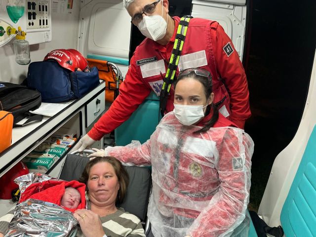 O parto aconteceu por volta das 17h30, na Rodovia Emídio Ricardo Poços, após a gestante entrar em trabalho de parto avançado antes de conseguir atendimento hospitalar.