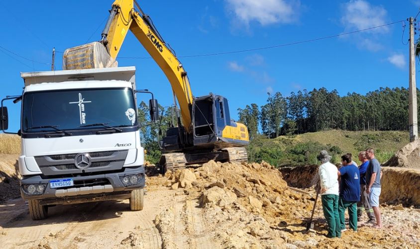 O prefeito Nenem Bardini e o secretário de Obras, Jeberson Burato, estiveram no local acompanhando o início dos trabalhos, que fazem parte do cronograma de infraestrutura em andamento no município.