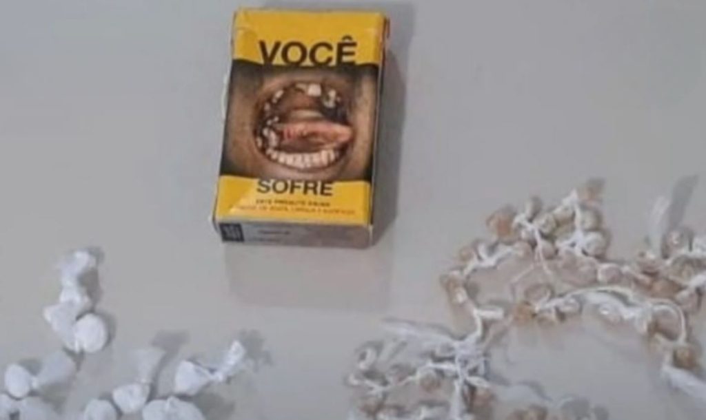 Embora a revista pessoal não tenha revelado nada ilícito, os policiais localizaram nas proximidades o pacote descartado, contendo aproximadamente 105 pedras de crack (19 gramas) e 39 buchas de cocaína (23,7 gramas), todas embaladas separadamente e prontas para a venda. Diante das evidências, os suspeitos receberam voz de prisão no local.