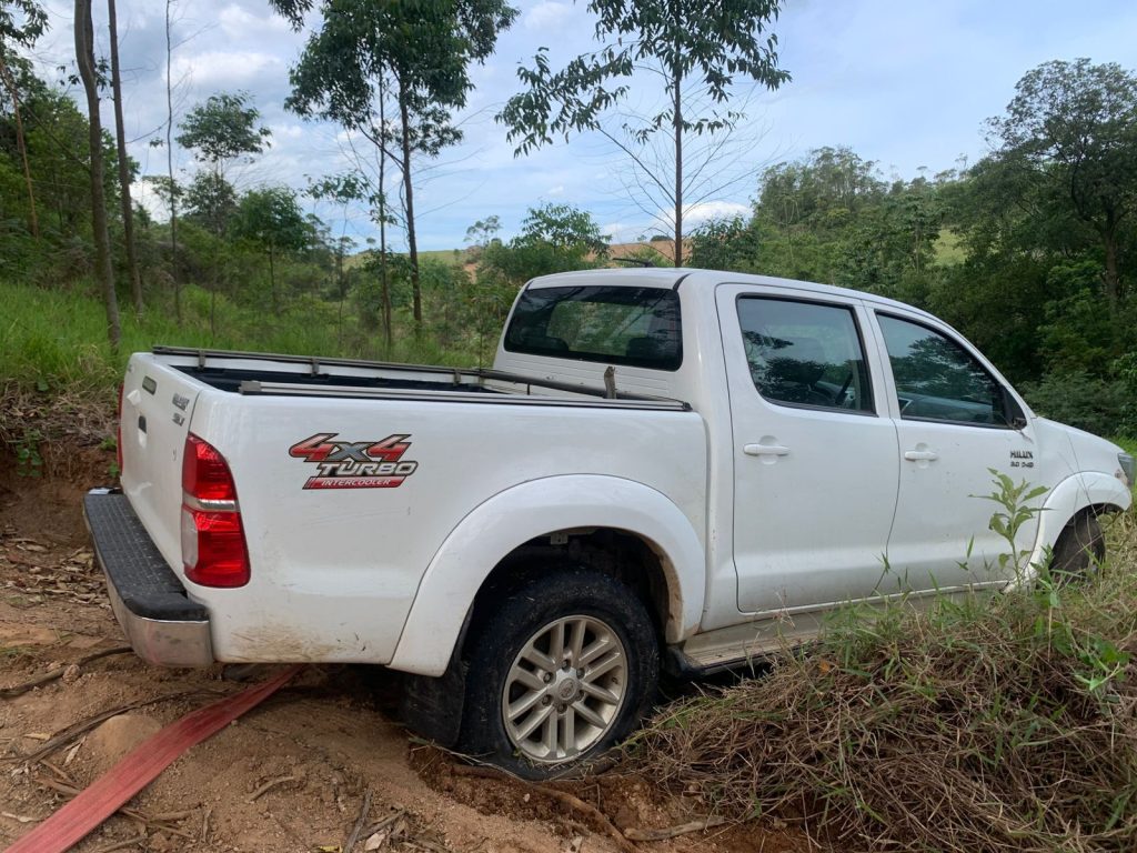 ajuda do Helicóptero da Policia Civil- SAER, os agentes de Sangão conseguiram localizar o veículo em uma área de mata próximo à uma antiga mina na região.