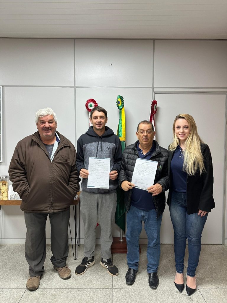 O ato contou com a presença do prefeito em exercício, Jaime de Souza, da coordenadora administrativa Beatriz Cardoso, e do representante da empresa vencedora da licitação, Juliano Machado Bortolon, da JBT Terraplanagem e Comércio de Materiais de Construção Ltda.