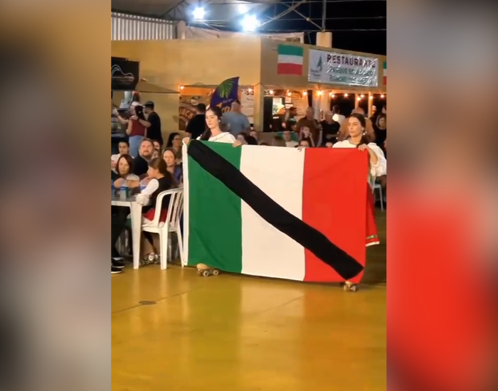 Durante o ato, que teve a presença de autoridades, a apresentação do Casal de Imigrantes e o emocionante momento cultural com o Coral Municipal de Pedras Grandes, duas jovens patinadoras desfilaram com a bandeira da Itália marcada por uma tarja preta, representando luto pela decisão, em função do previsto no decreto.